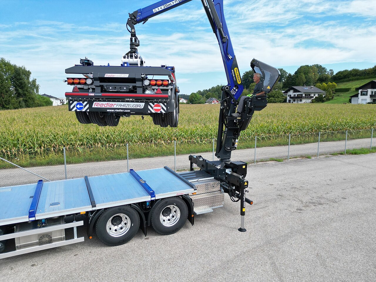 Das Ergebnis dieser Lösungen, sind zwei praxisgerechte, wirtschaftliche Systeme: mehr Flexibilität im Holztransport und spürbar geringere LSVA-Kosten auf der Rücktour – entwickelt und gebaut von Riedler Fahrzeugbau.