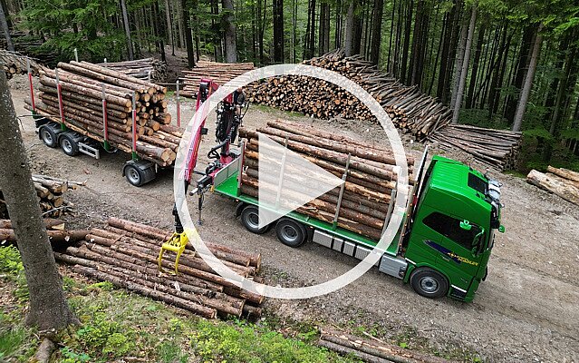 Video anzeigenNeuer Kurzholzhängerzug für Forstdienstleister Greiner